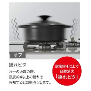 万一の地震の際、震度約4以上の揺れを感知すると自動消火します。