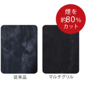 新たな燃焼方式により、焼き魚などの調理時に発生する煙やニオイを大幅に軽減。